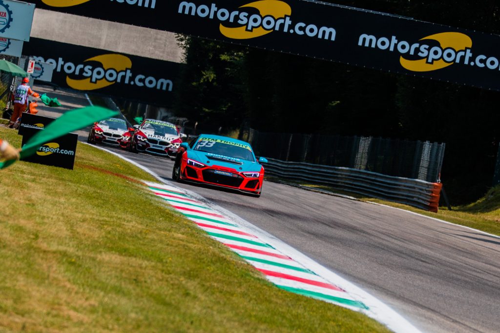 Bei heißen Temperaturen ging das erste Rennen am Samstagnachmittag über die Bühne. Nach einem unbeabsichtigten Regelverstoß mussten die drei Fahrzeuge, pilotiert von Sophie Hofmann (DE), Lucas Mauron (CH) und Jörg Viebahn (DE), den Lauf von hinten aufnehmen. Von dort startete eine starke Aufholjagd in Richtung der Punkteränge. Lucas Mauron kollidierte im Verlauf mit einem Konkurrenten und musste seinen Audi R8 nach einem Folgeschaden abstellen. Jörg Viebahn querte als Zehnter die Ziellinie und sicherte den ersten Punkt für das Team aus Witten. Der Routinier wurde zudem auch als „Fahrer des Rennens“ ausgezeichnet. Auch Sophie Hofmann steigerte ihre Pace kontinuierlich und beendete das Rennen auf dem siebzehnten Platz.